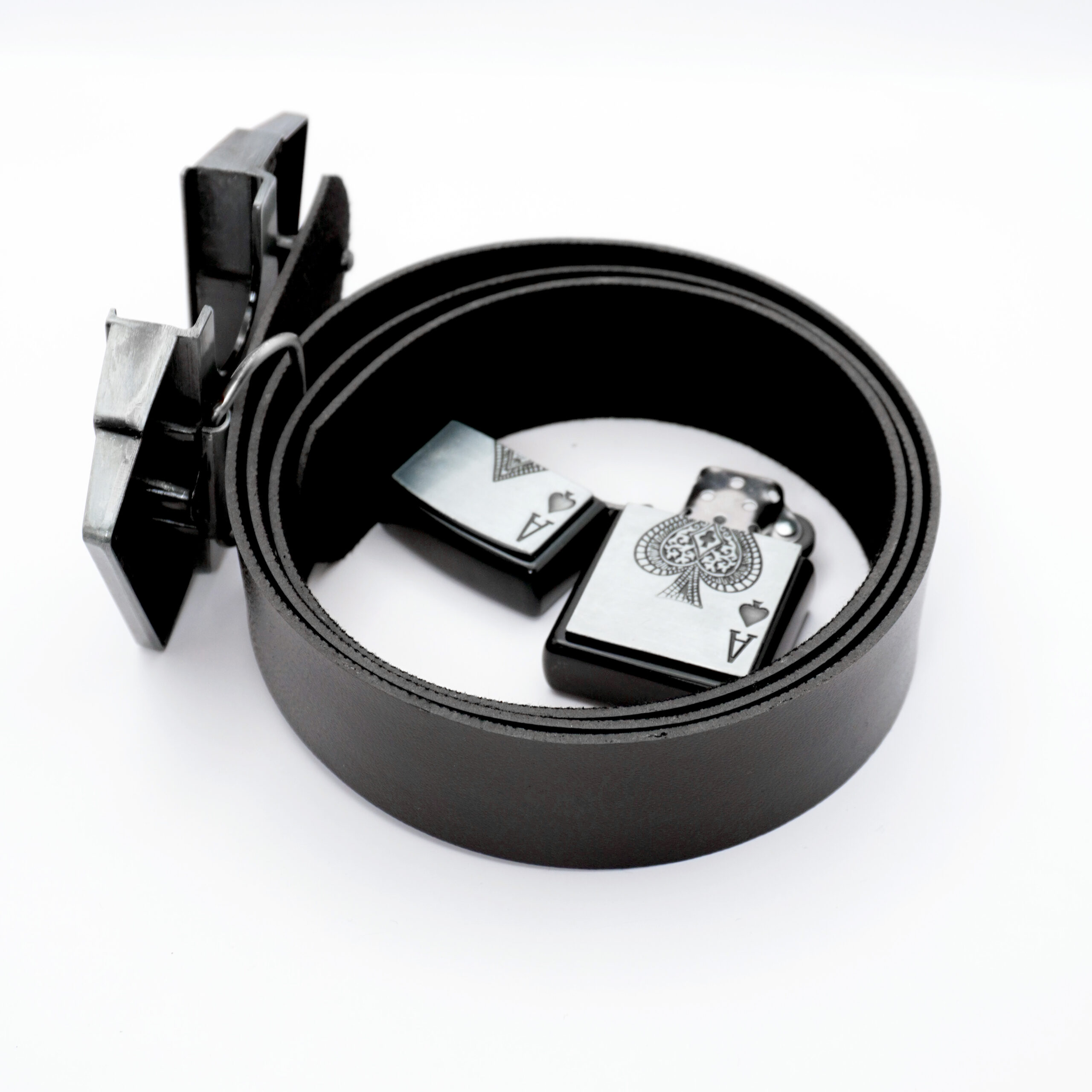 سگک این کمربند با طراحی خاص شامل یک فندک بنزینی